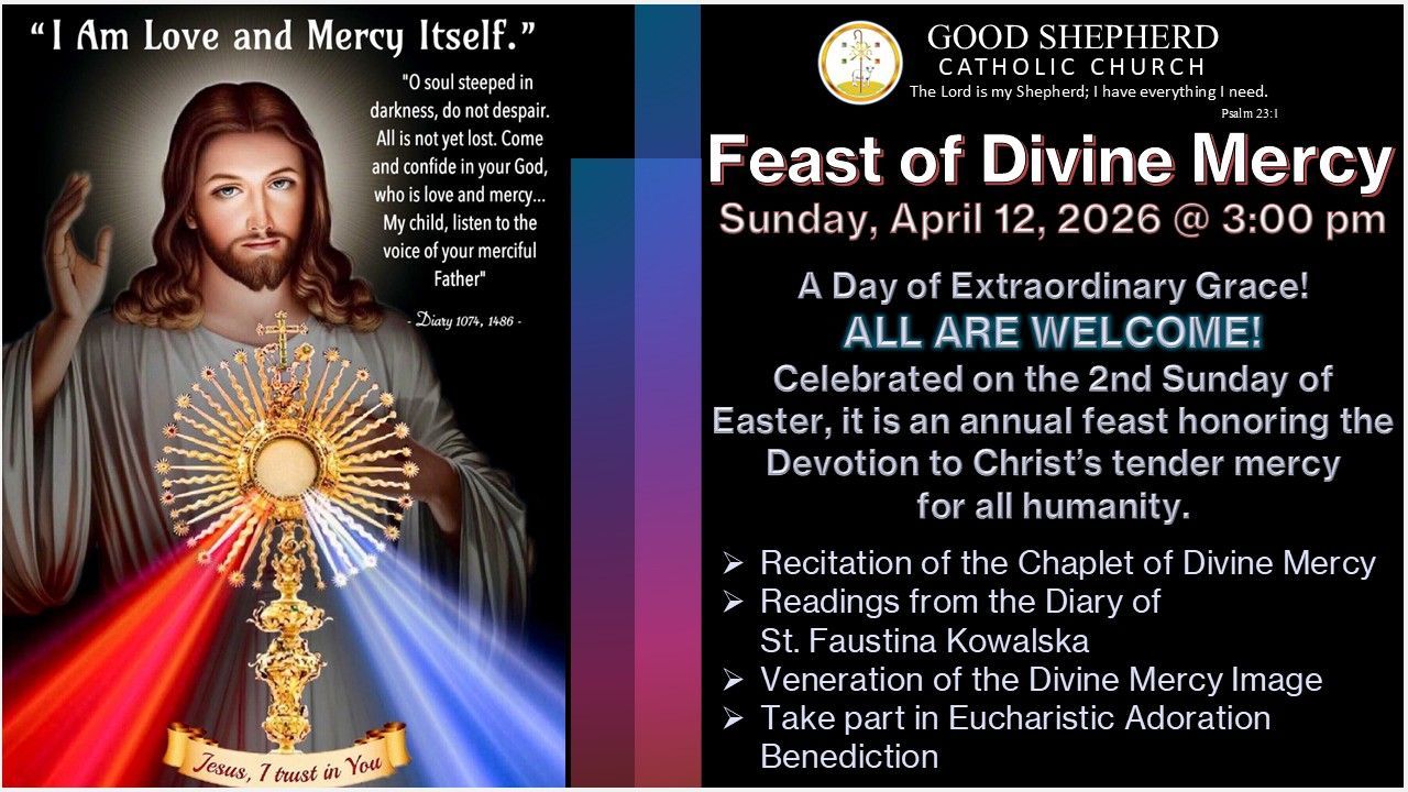 We the Good Shepherd Catholic Church, a Eucharistic Community guided by the Holy Spirit and the love for the Lord Jesus Christ, seek to glorify the Kingdom of God in worship, prayer, fellowship, service, learning, and living His Word.