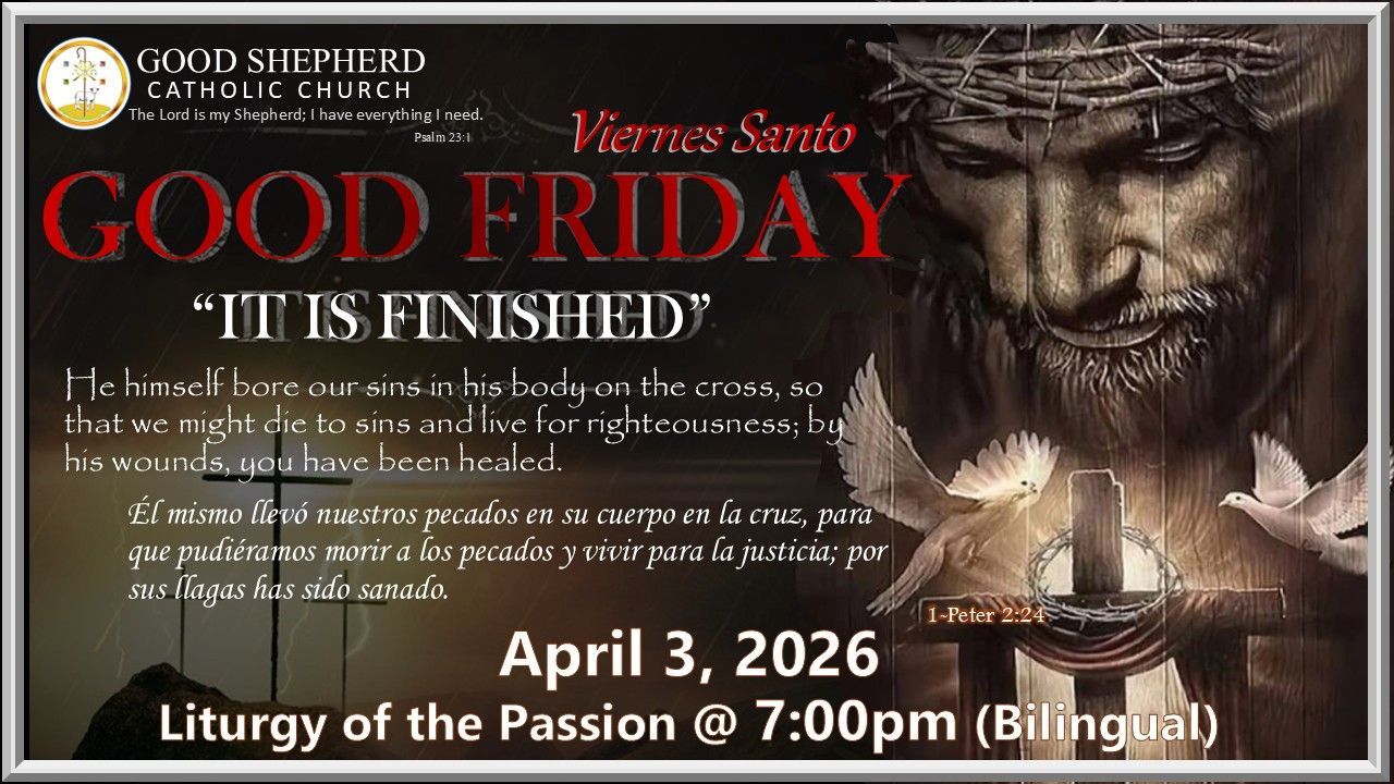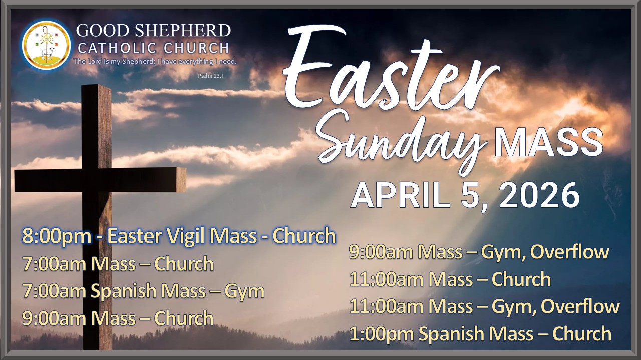 We the Good Shepherd Catholic Church, a Eucharistic Community guided by the Holy Spirit and the love for the Lord Jesus Christ, seek to glorify the Kingdom of God in worship, prayer, fellowship, service, learning, and living His Word.