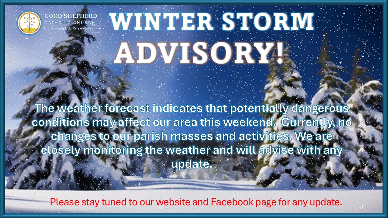 - Liturgical Duties for the mass: (Sacristan, Lector, EM, Altar Server, etc . . .) You are not required to serve if you are not able to do so due to safety concerns. Thank you, stay warm and safe.